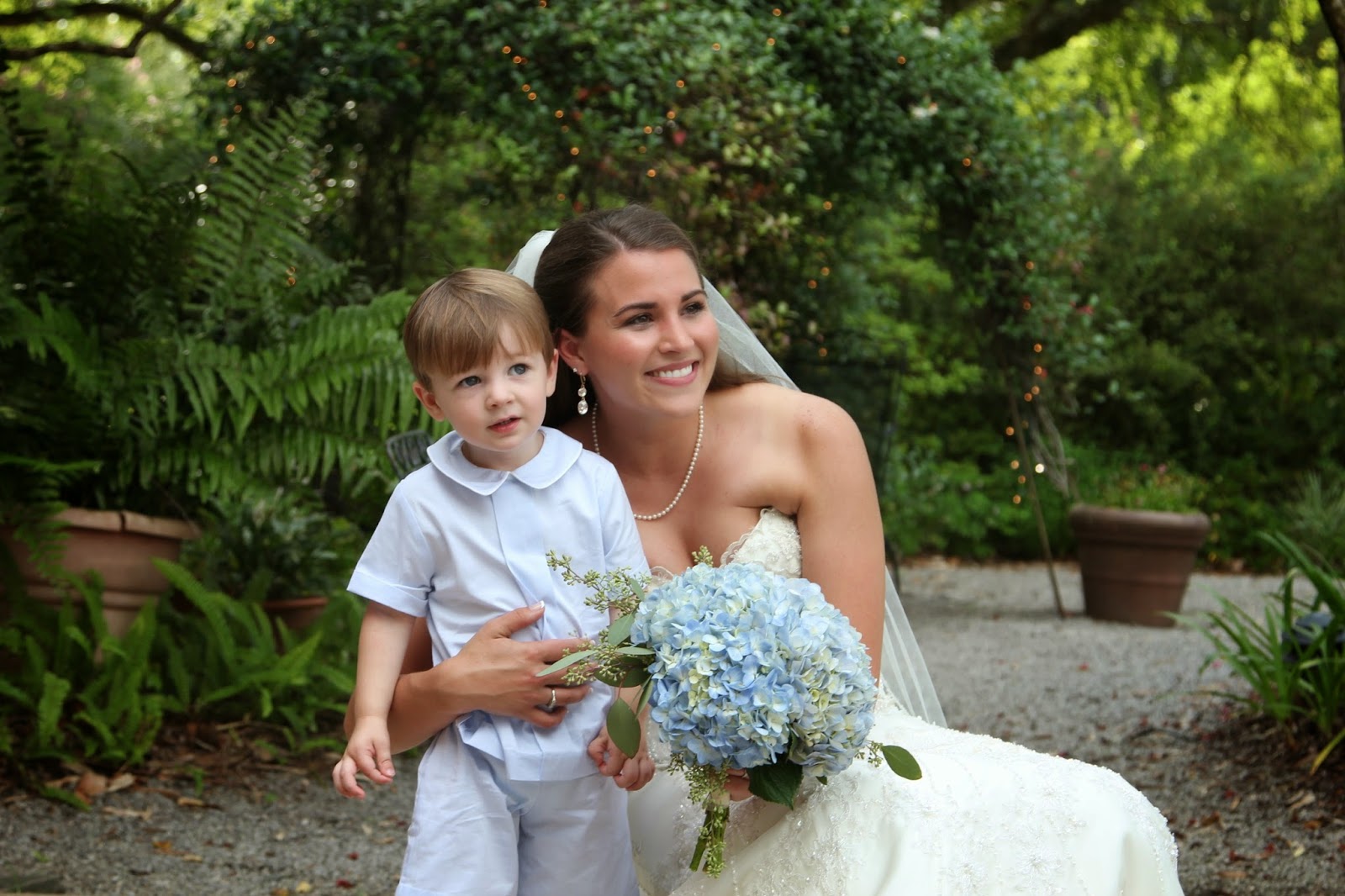| The cute ring bearer's turn with the bride. |